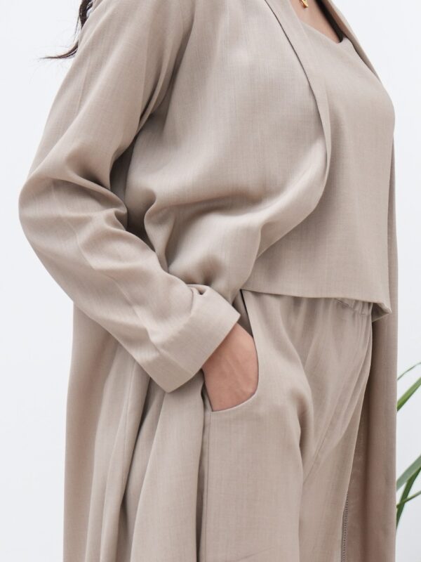 Women’s Beige Longline Blazer Co-Ord Set with Crop Top & Pants