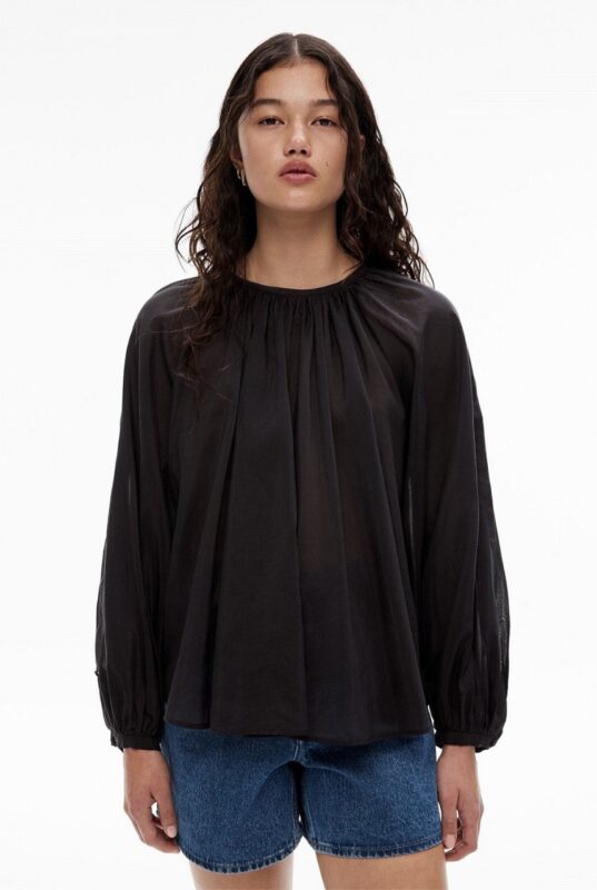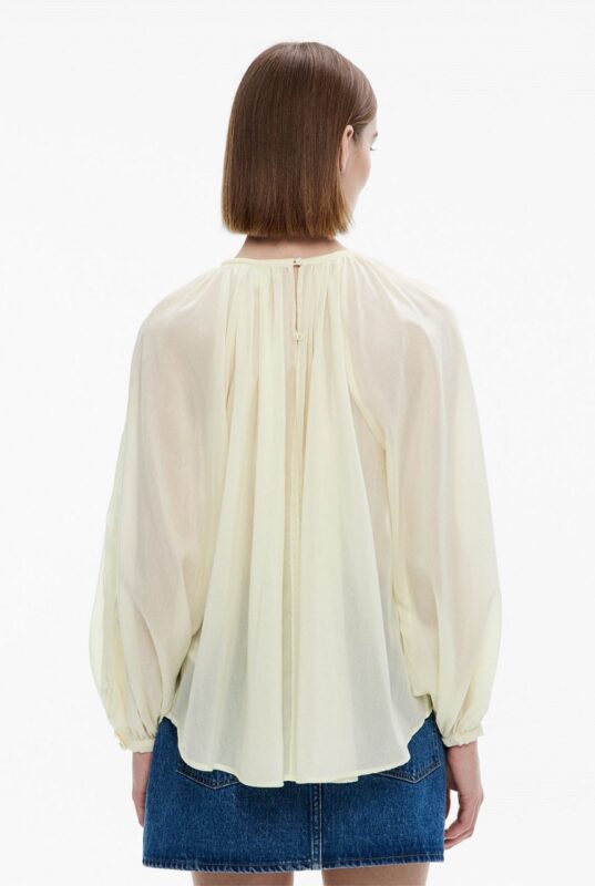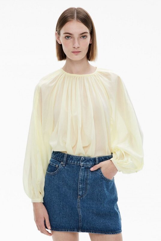Lemon Yellow Sheer Balloon Sleeve Blouse
