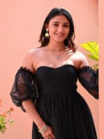 Be the first to review “Black Off-Shoulder Dress with Sheer Organza Puff Sleeves” Cancel reply