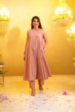 Home Shop Anarkali Kurti Blush Peach Sleeveless Flared Kurta Set – Elegant Contemporary Ethnic Wear