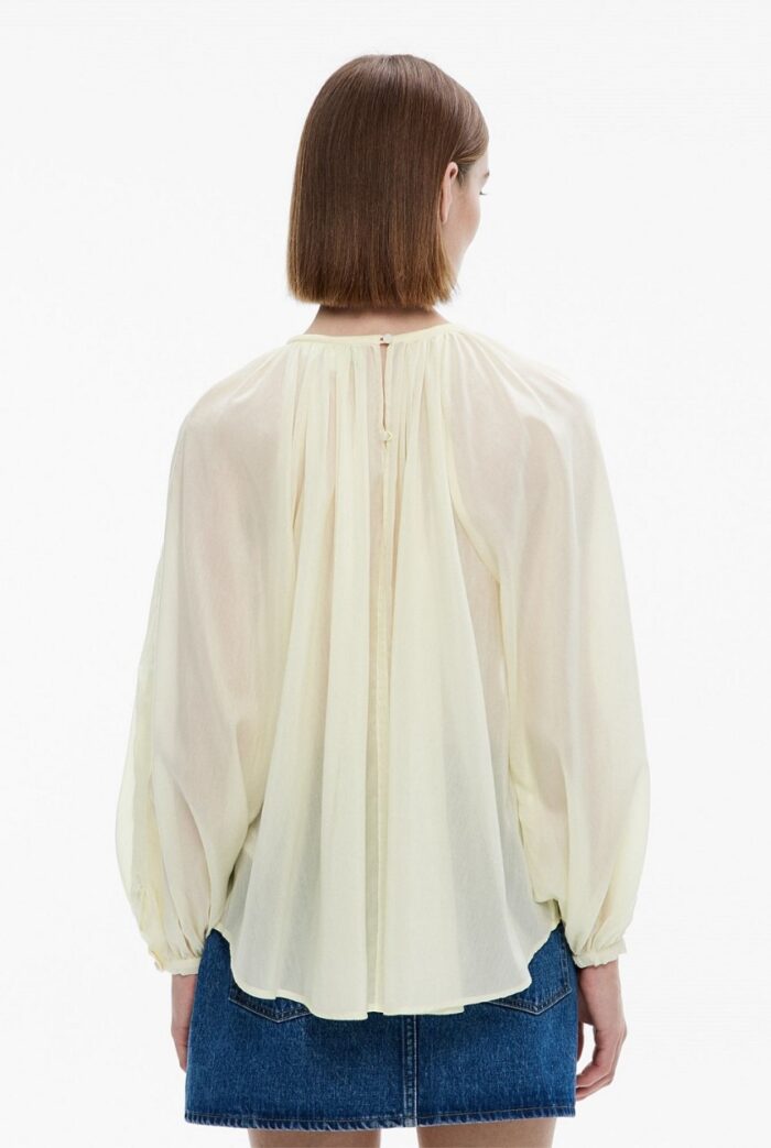 Add a touch of sunshine to your wardrobe with our Lemon Yellow Balloon Sleeve Blouse. Crafted in a soft sheer fabric, this blouse drapes effortlessly and features a relaxed silhouette with gathered pleats at the neckline.
