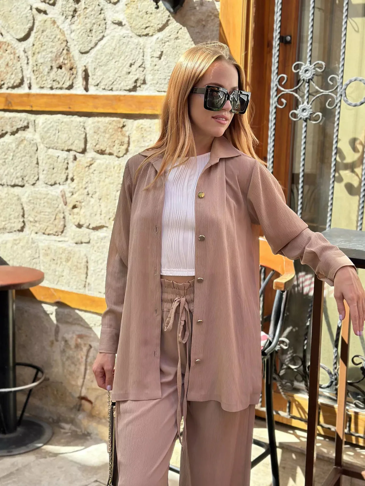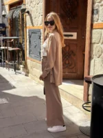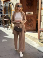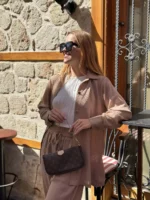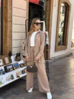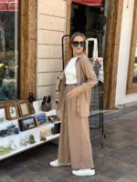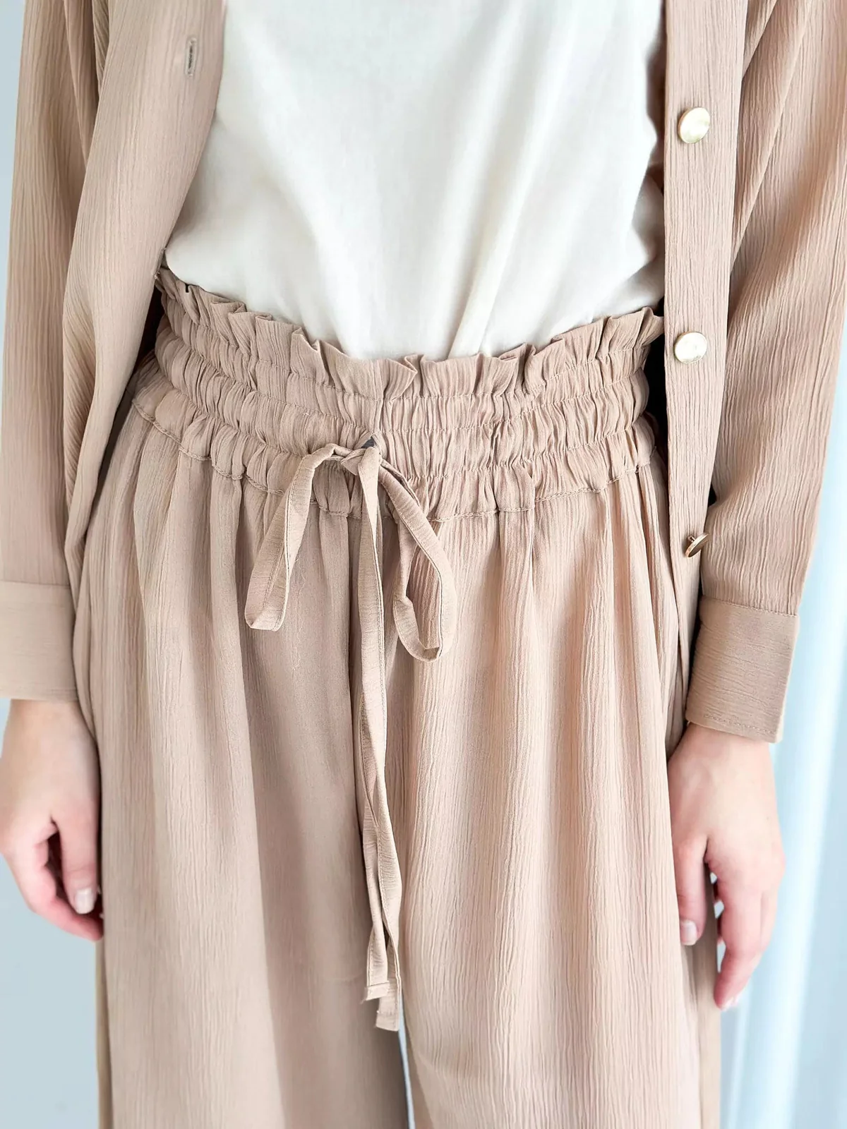 Elevate your off-duty days with this Nude Beige Co-ord Set, made for modern minimalists. Featuring a flowy long shirt with a relaxed fit and matching wide-leg trousers, this set is a perfect blend of comfort and sophistication.