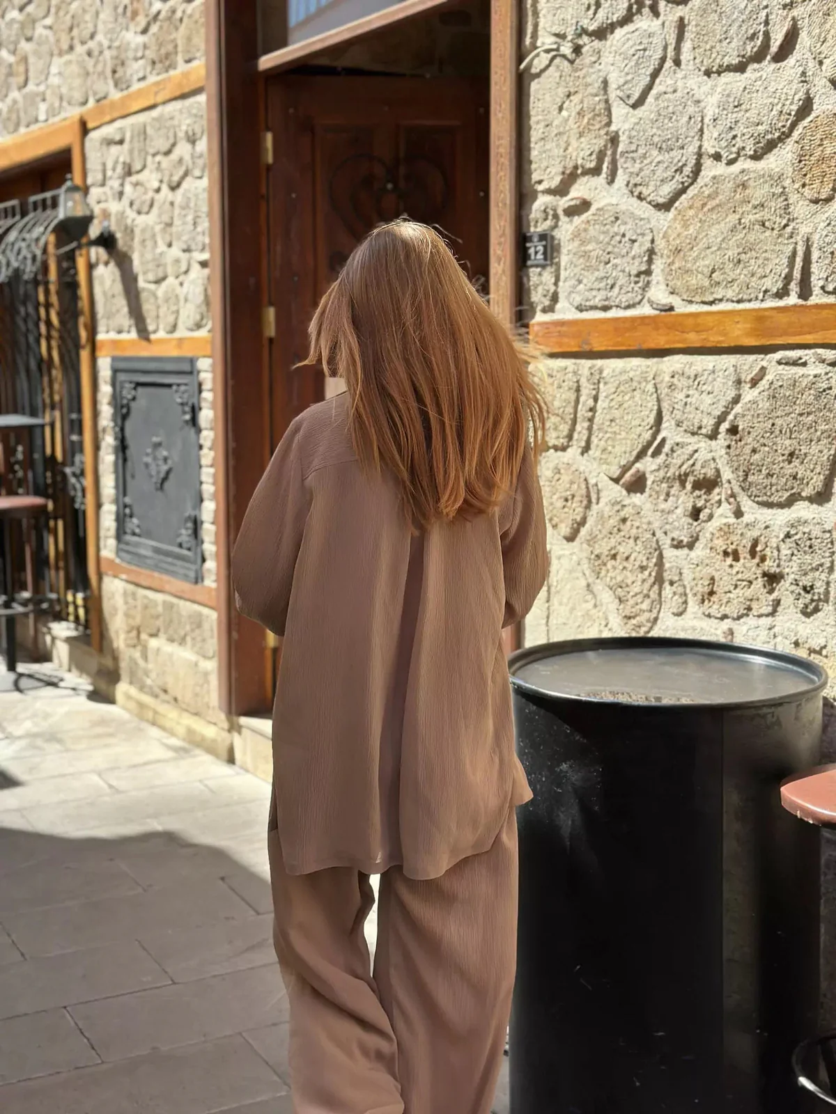 Crafted from soft, lightweight textured fabric, it moves beautifully and keeps you cool — ideal for summer brunches, travel days, or casual lounging.