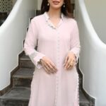 This graceful Pastel Pink Long Kurta with Palazzo Set is a blend of elegance and comfort. Crafted from soft cotton blend fabric, the kurta features a front open design with delicate lace edging and stylish detailing on the sleeves. The matching wide-leg palazzo pants enhance the flowy silhouette, making this outfit perfect for festive gatherings, casual wear, or office dressing.