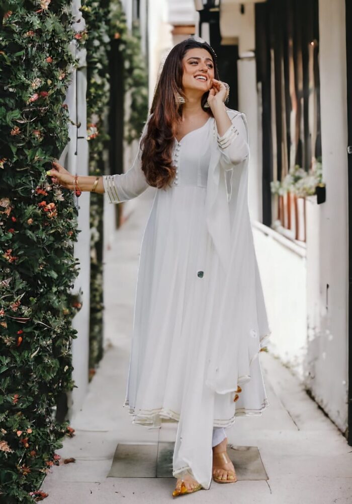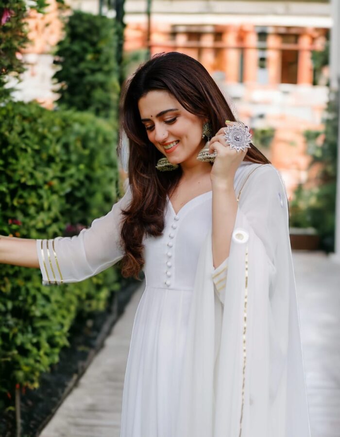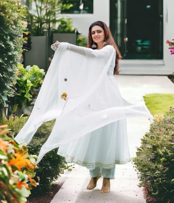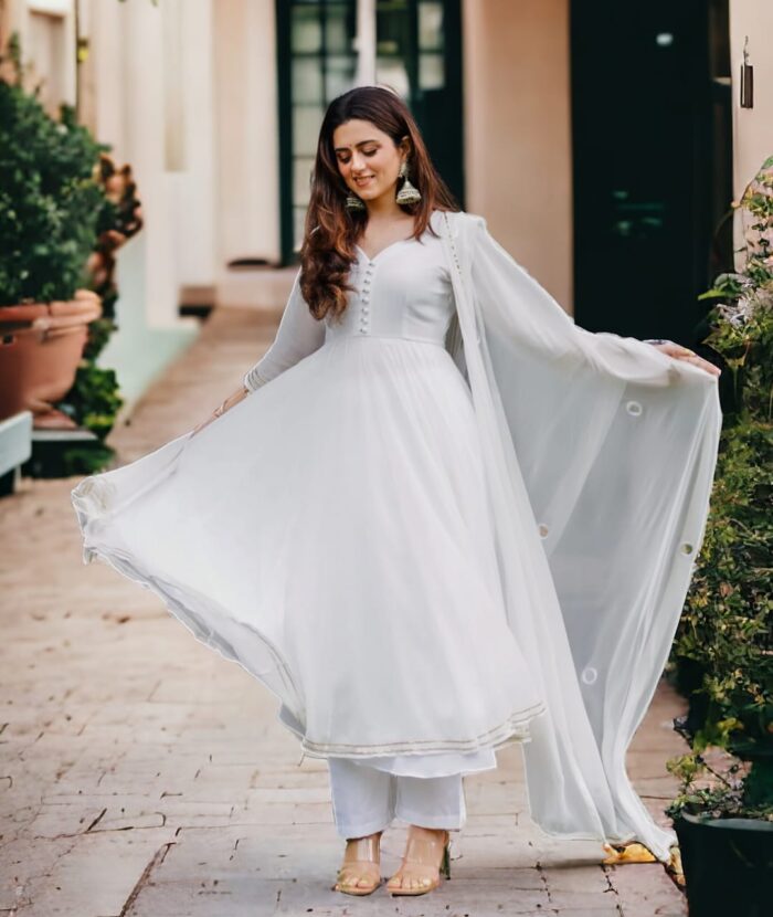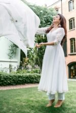 2 reviews for White Anarkali kurta pant with dupatta