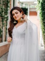 Drape yourself in elegance with this White Anarkali Kurta Set, available now at Rizzvogue.com!