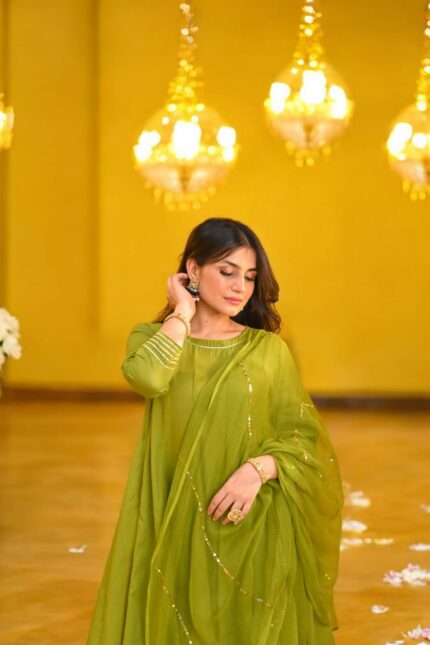 • Artisan Craftsmanship: Dupatta showcases intricate mirror work and heavy lace, adding a refined and luxurious appeal.