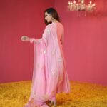 Adding to its festive charm, the outfit comes with a matching sheer dupatta, delicately adorned with golden embroidered motifs, making it ideal for ethnic occasions. The ankle-length silhouette flatters all body types, while the soft pastel pink color gives it a modern yet traditional appeal.