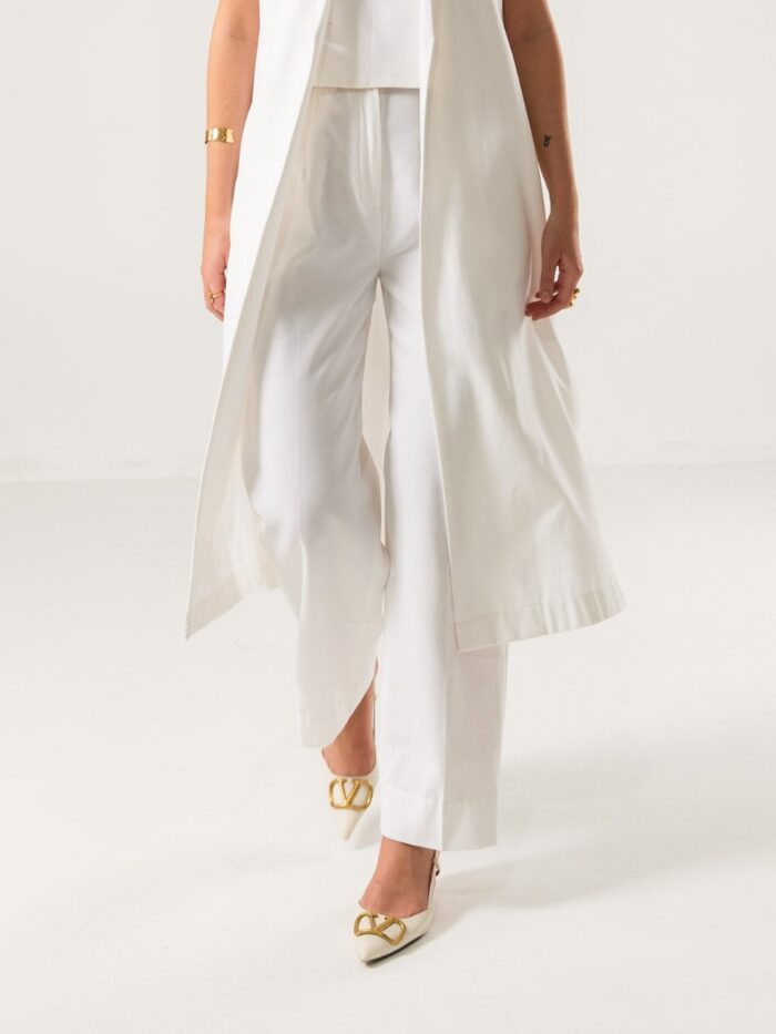 Made from lightweight, breathable fabric, this set is perfect for office meetings, travel looks, casual brunches, and evening events. Its classic white tone makes it easy to pair with bold accessories or metallic footwear.