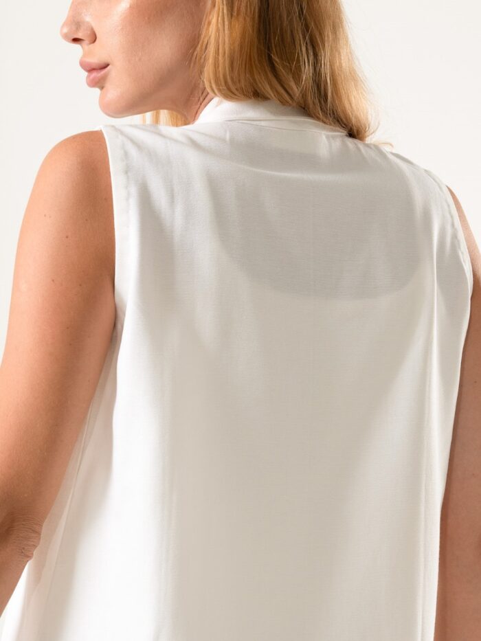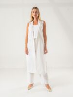 Upgrade your wardrobe with this all-white sleeveless blazer co-ord set, a perfect blend of modern elegance and minimal sophistication.